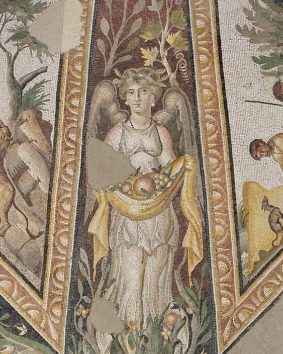 Déjà, dans l’Antiquité, le raisin était un symbole d’abondance associé à l’automne, bien visible sur la Mosaïque des saisons du IVe siècle découverte à Antioche :