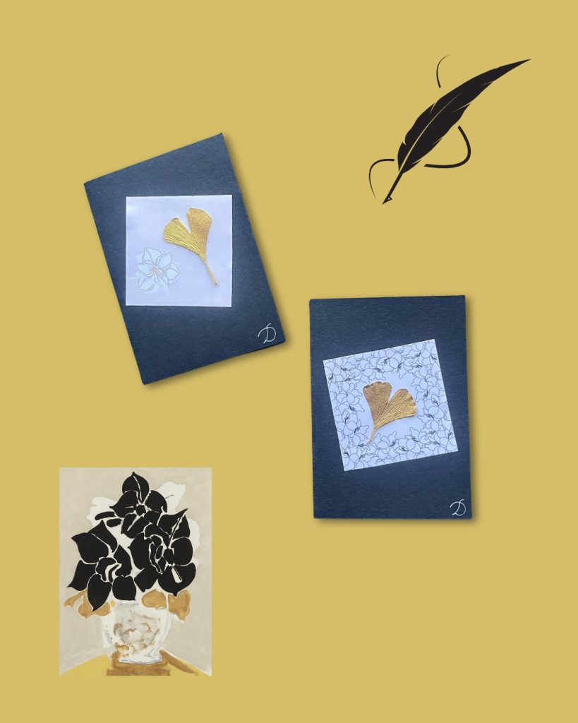 J’ai repris cette gamme du noir et de l’or pour mes cartes buissonnières :