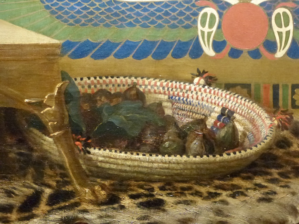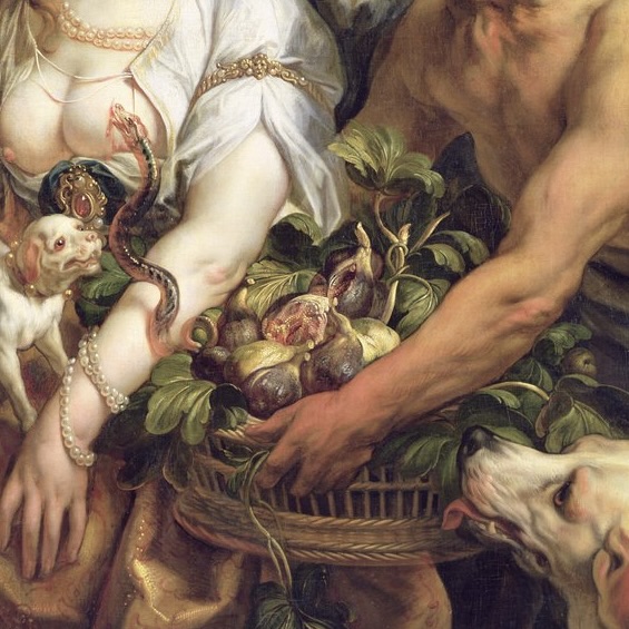 Ce panier de figues fait partie des attributs iconographiques récurrents de Cléopâtre.
