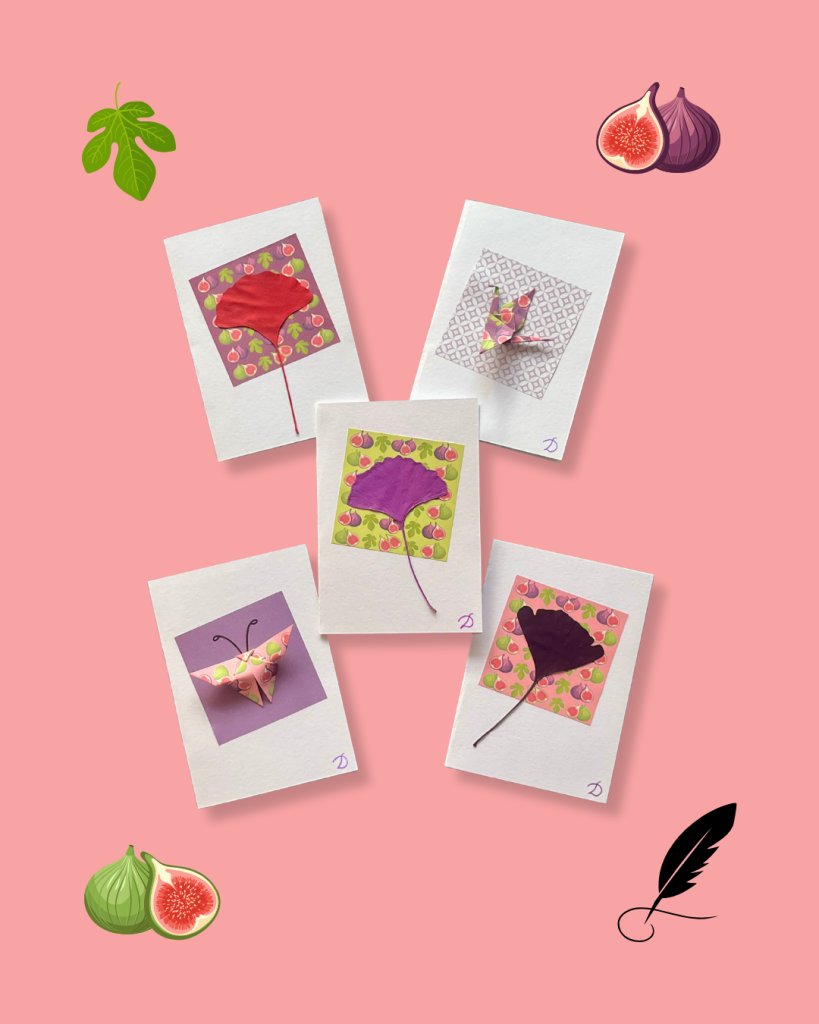En ce jour de la figue dans le calendrier républicain, j’ai créé pour mes cartes buissonnières un papier semé de figues aussi bien ouvertes que fermées.