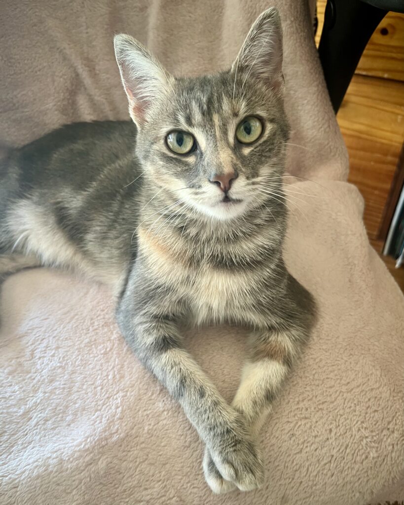 Laissez-moi vous présenter Étoile, une jeune chatte au regard curieux et aux moustaches toujours en éveil :