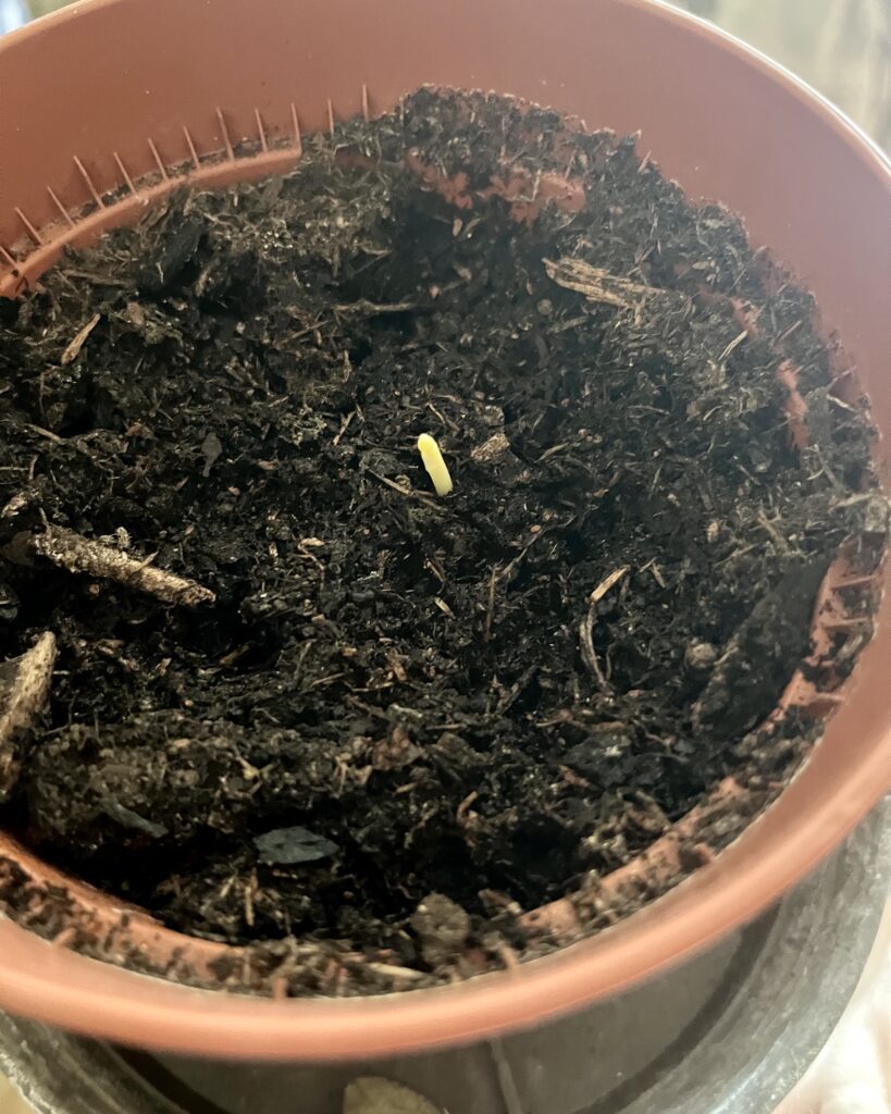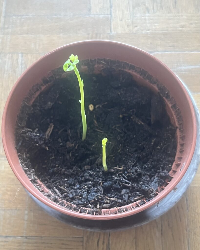 Fin décembre, comme un cadeau de Noël inattendu, j’ai aperçu une première pousse. Une tige fine, fragile en apparence, mais résolue. Puis une deuxième :