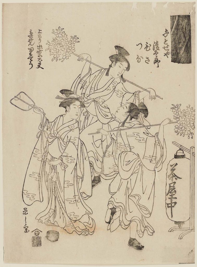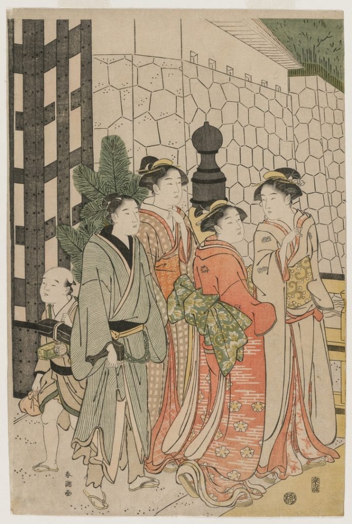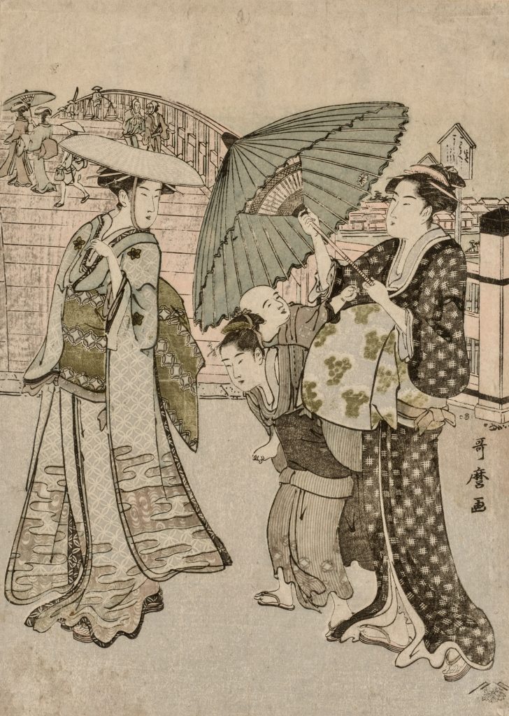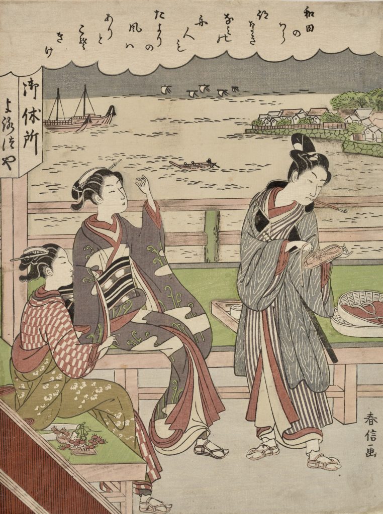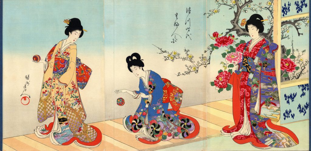 Enfin, je vous laisse admirer le motif au gré des kimonos de ces superbes bijin-ga (美人画, « peintures de belles personnes », en général des femmes) :
