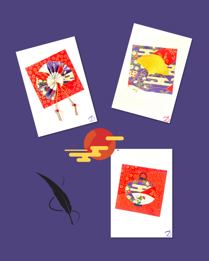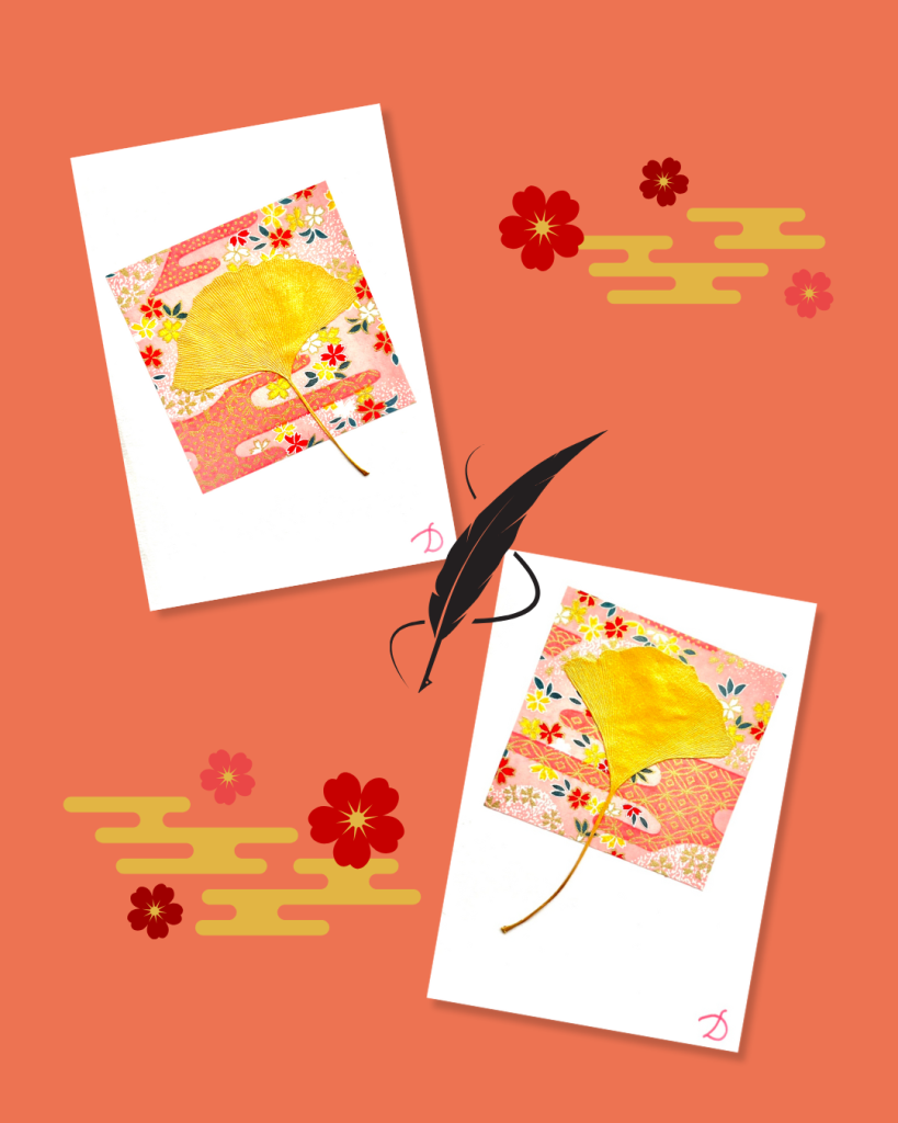 Cette abstraction décorative se prolonge naturellement sur le papier washi de mes cartes buissonnières :