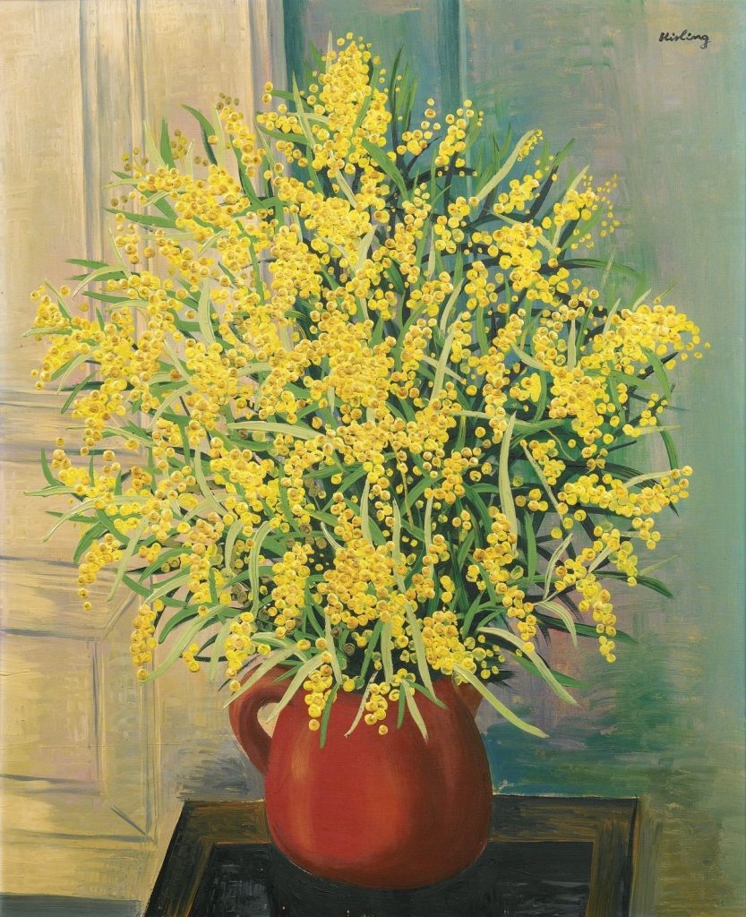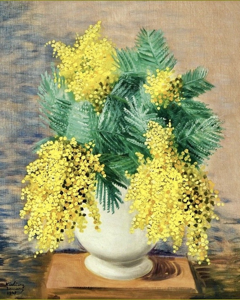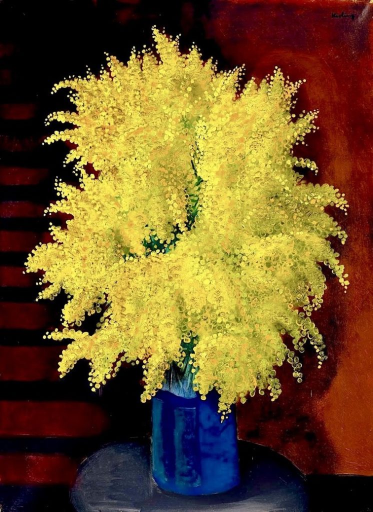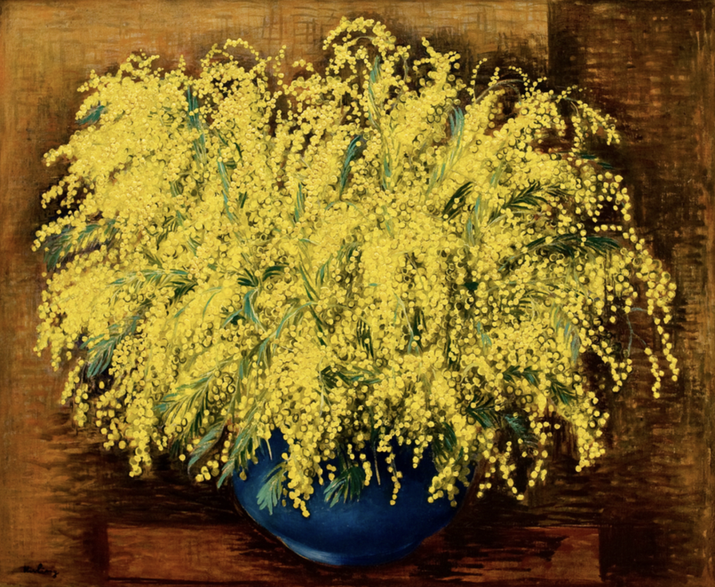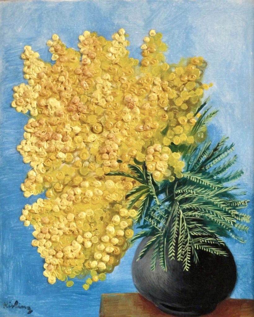Dans l’œuvre du peintre Moïse Kisling (1891-1953), le bouquet de mimosa revient comme un thème récurrent. Des années 1920 jusqu’à la fin de sa vie, il s’emploie ainsi à capturer ce jaune vif si particulier sur ses toiles, comme une construction patiente, presque méditative.