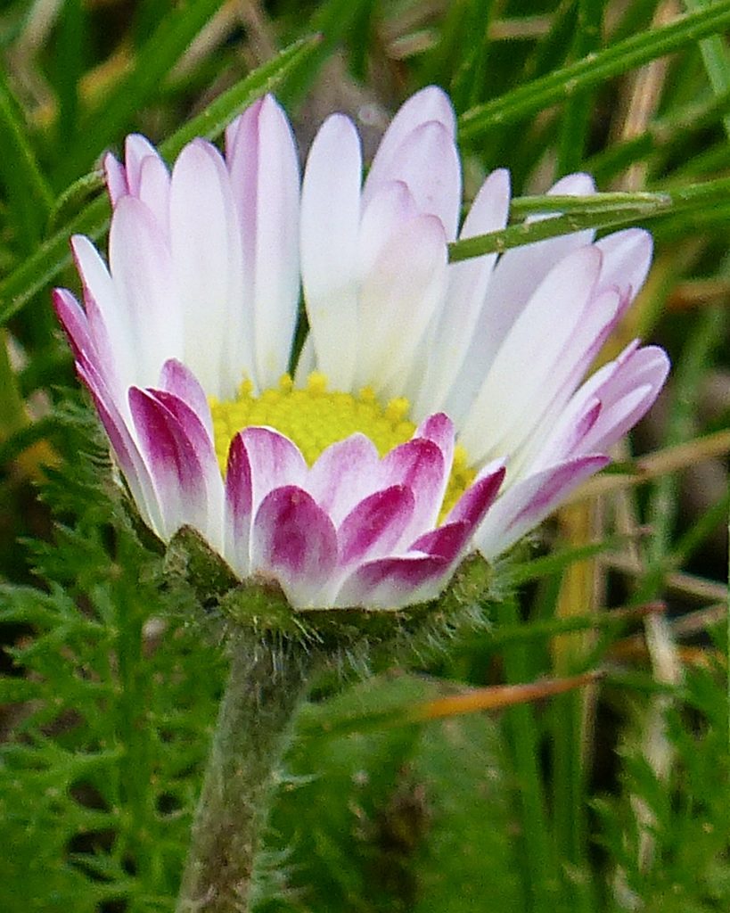 La pâquerette commune, Bellis perennis, est une petite plante vivace de la famille des Astéracées, qui comprend également les marguerites et les pissenlits.