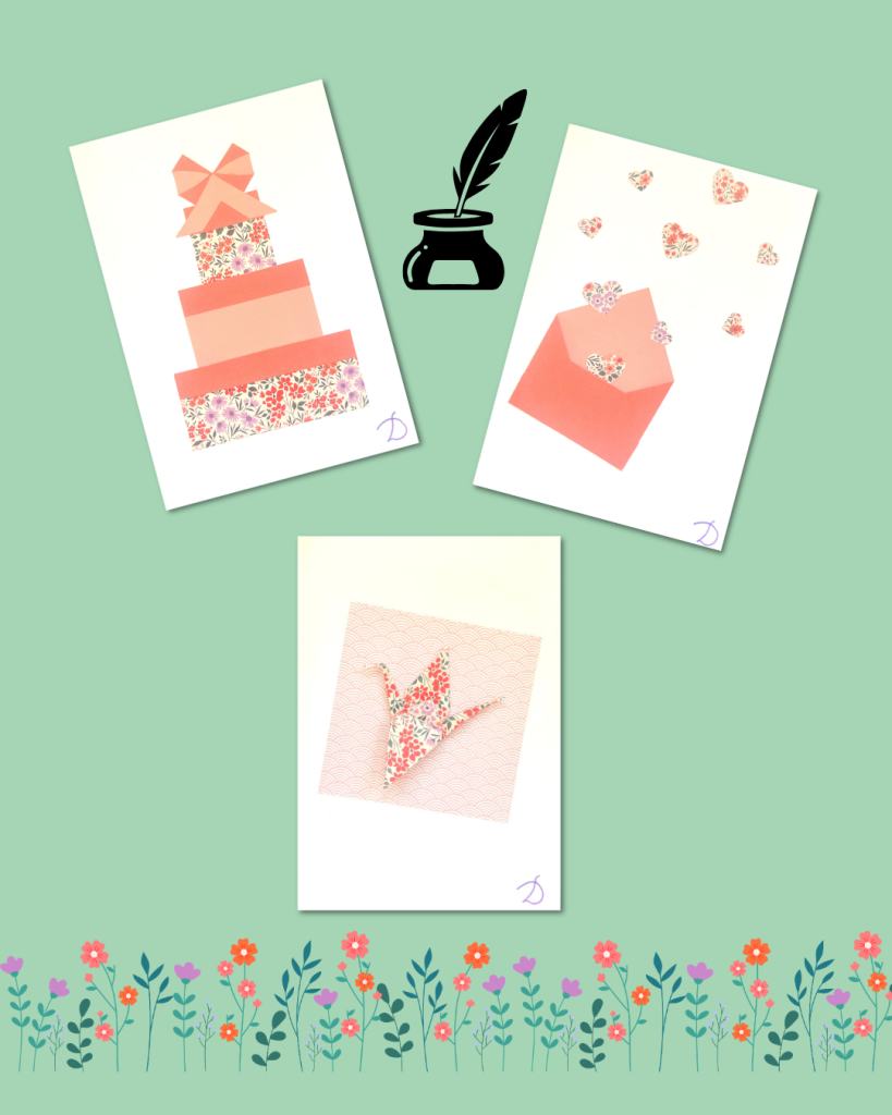 Pour le célébrer, des fleurs aux couleurs joyeuses se sont glissées jusque dans les papiers de mes cartes :